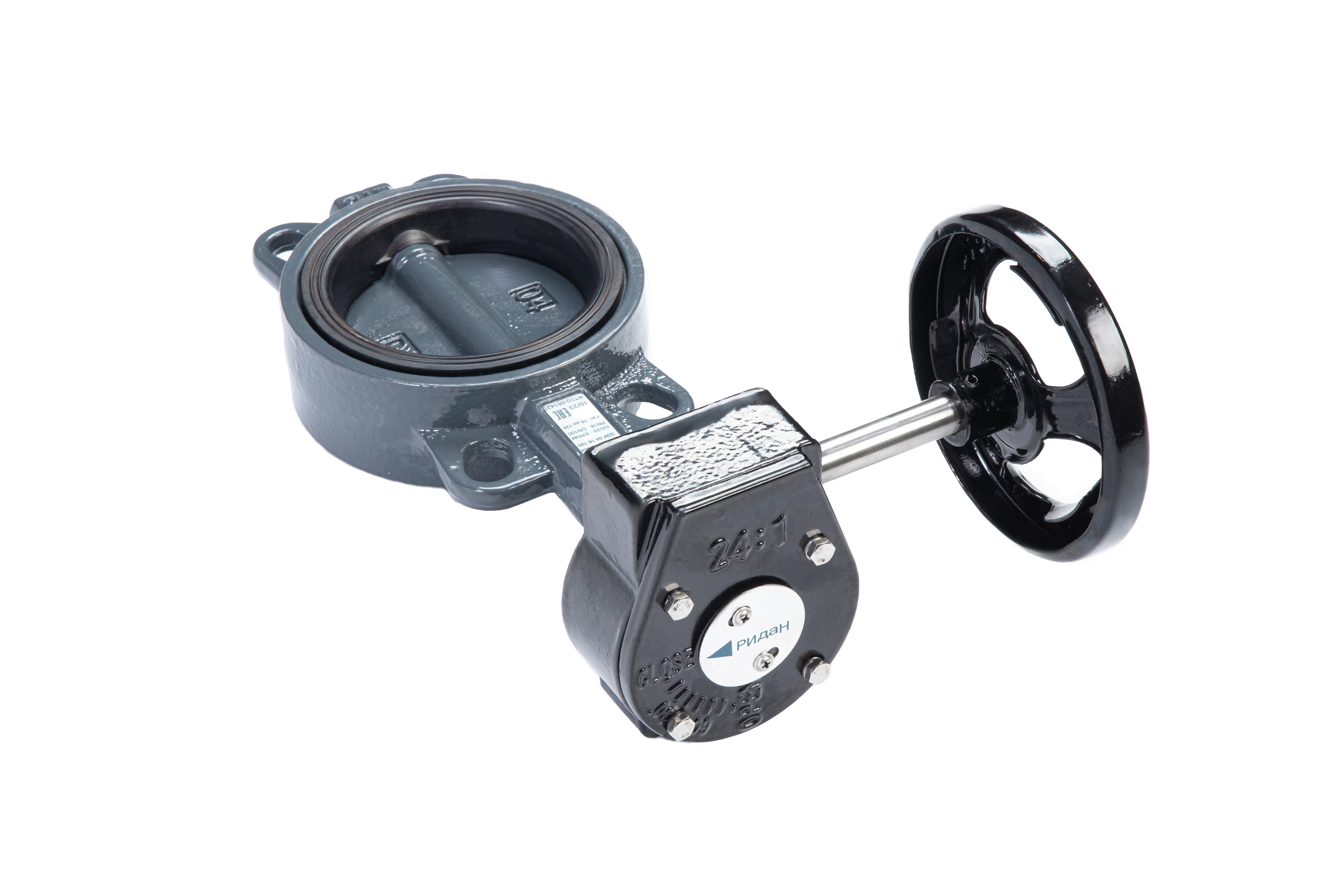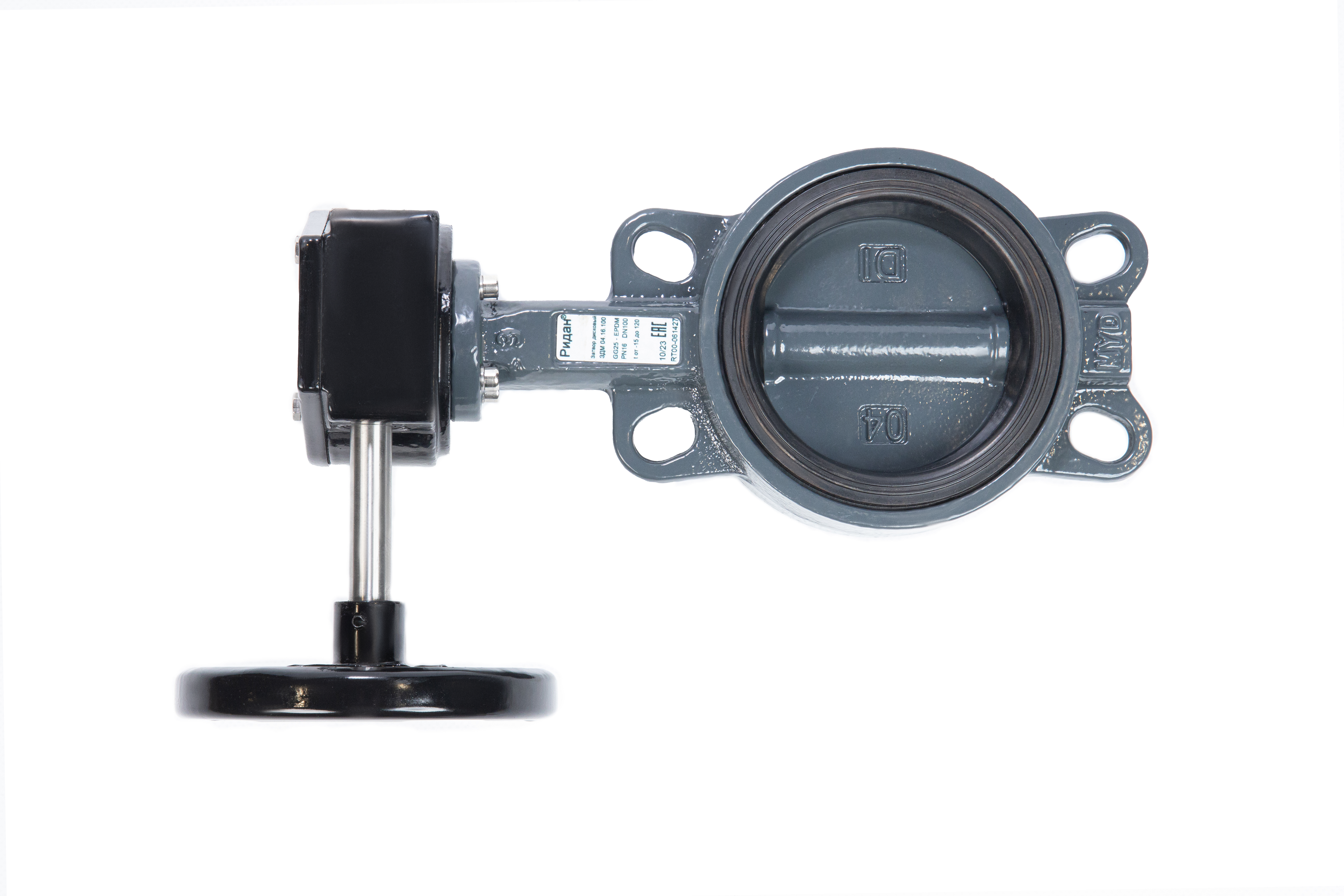 Ридан 082X4410R — Затвор дисковый поворотный ЗДМ 04.16.100, PN16, DN100, корпус GG25, диск — чугун GGG40, уплотнение EPDM, управление — червячный