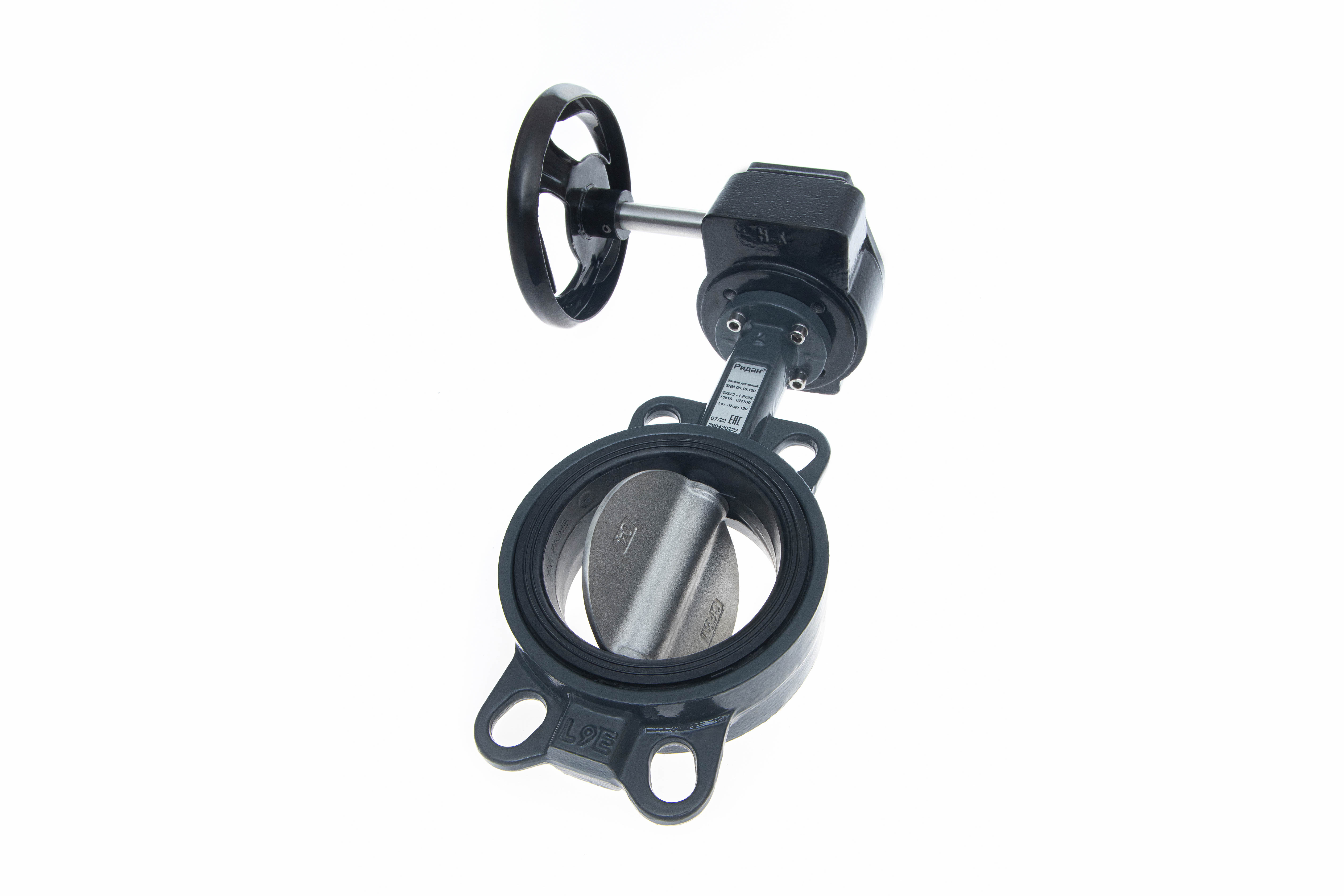 Ридан 082X4431R — Затвор дисковый поворотный ЗДМ 06.16.125, PN16, DN125, корпус GG25, диск — нержавеющая сталь AISI316, уплотнение EPDM, с ручным редукторным приводом